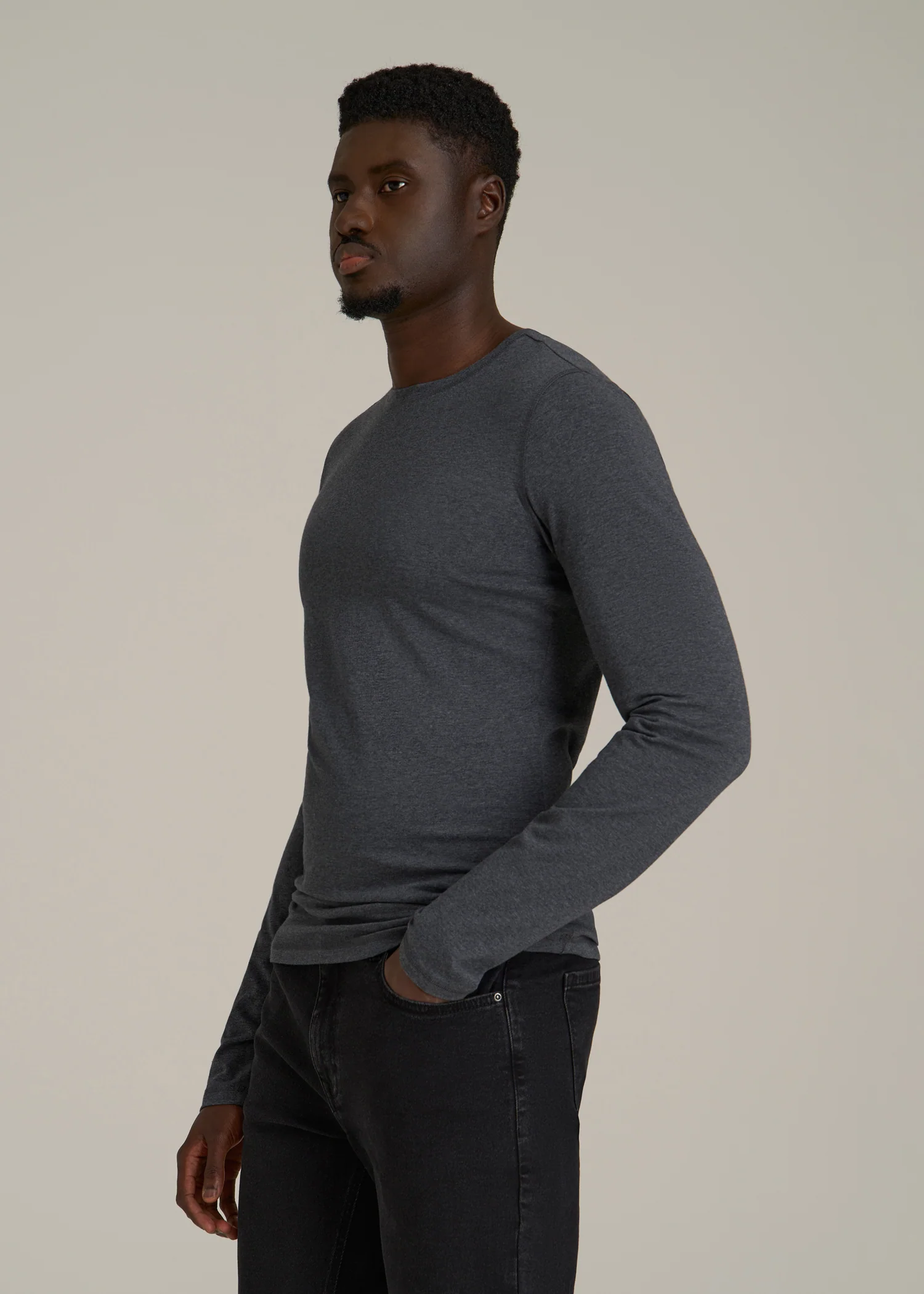 The Essential Slim Fit Long Sleeve Tee for Tall Men in Charcoal Mix