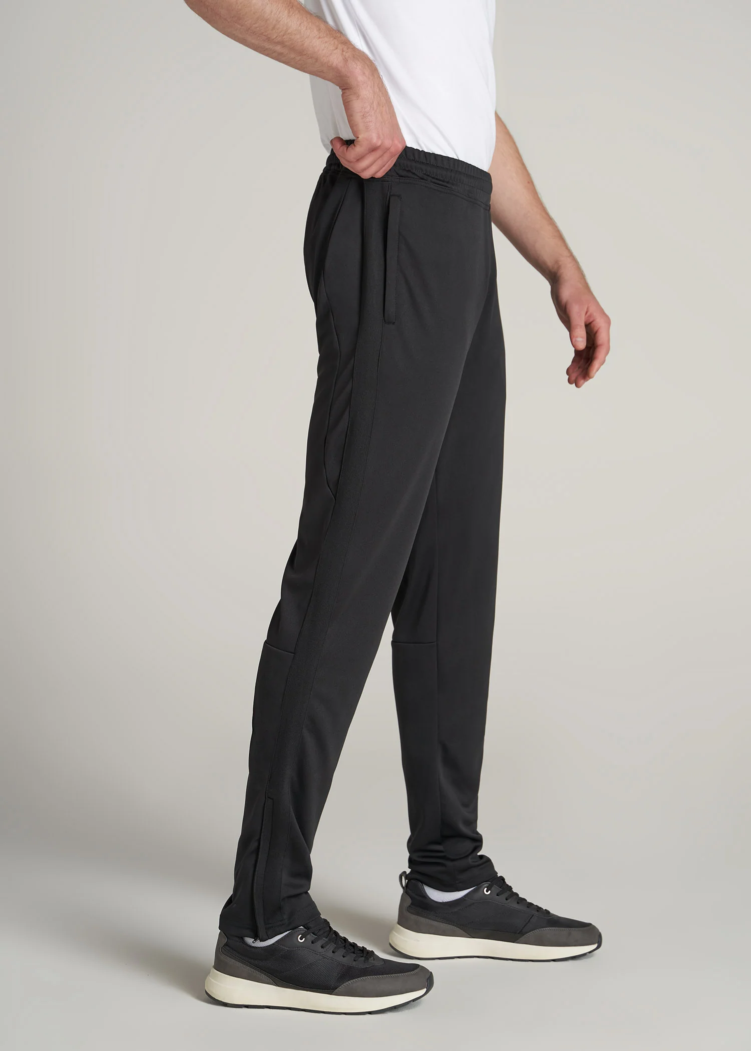 These men's tall athletic pants are a classic take on an athleisure essential. When it comes to athleisure, a good fit is key. You need something that's comfortable enough to relax in yet capable enough to work out in ā but as a tall guy, it can be hard to find options that work for your height. You either have to compromise on a baggy fit or settle for lengths that are way too short. Not anymore. We know how hard it is to find quality styles when you're tall, which is why we crafted these tall men's pants specifically for guys between 6'3ā and 7'1ā. The regular fit has been measured to fit your frame and the extra-long inseam goes all the way past your ankles with zippered cuffs. We sourced a lightweight knit blend that's quick-drying, breathable and engineered for movement. The side seam zipper pockets and contrast striping along each side provide the finishing touches to this athleisure staple piece. Wear them with a slim-fit tee, our matching athletic stripe jacket and your favorite sneakers.