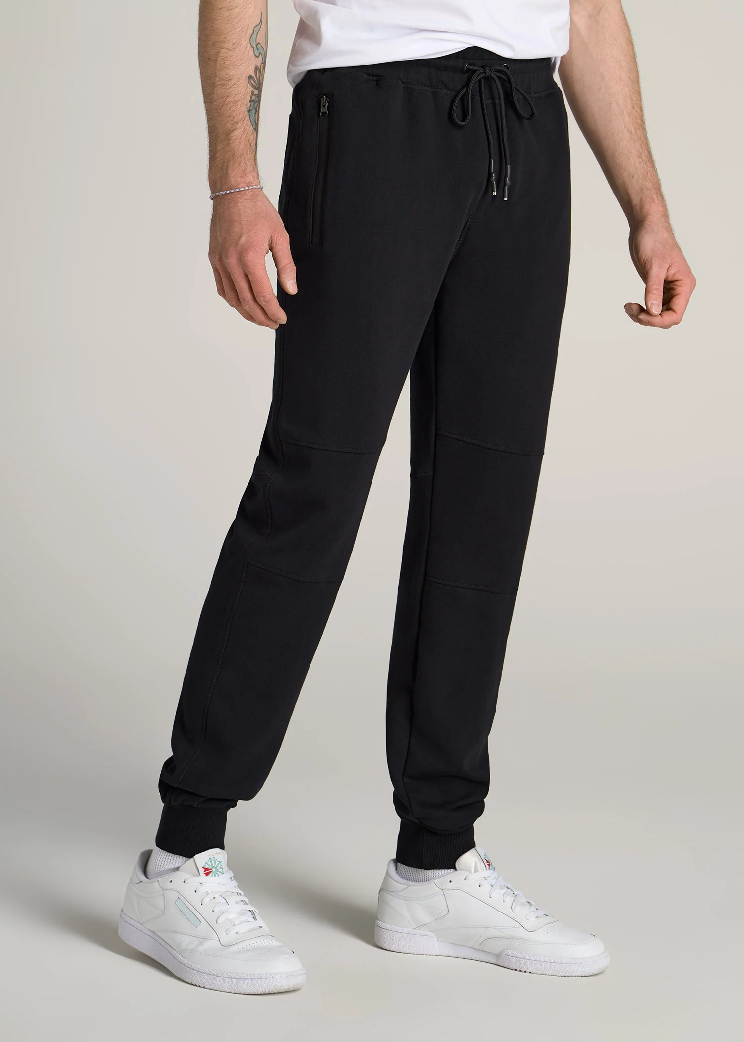 The search for the best joggers for tall men is over. Joggers are basically the perfect pants â theyâre like pajamas that you can wear everywhere! The style became popular over the past decade with the rise of athleisure, as menâs fashion began to revolve around terms like âsports luxeâ and âstreet chicâ. They were designed to be a trendier take on the classic sweatpants and look just as at home on the couch as they would on the streets or at the gym. But as a vertically gifted guy, finding menâs tall joggers can be a tough task. Joggers are meant to end at the ankle, which means you need a pair with an extra-long inseam. We designed ours for men that are 6â3â to 7â1â with the length you need so that you can wear this staple piece with confidence (and without worrying about accidental capris). The super-soft French Terry fabric was carefully sourced to be durable, long-lasting and so comfortable that you wonât want to wear anything else. Throw these joggers on with one of our matching sweatshirts or a fitted tee and your favorite sneakers.Â