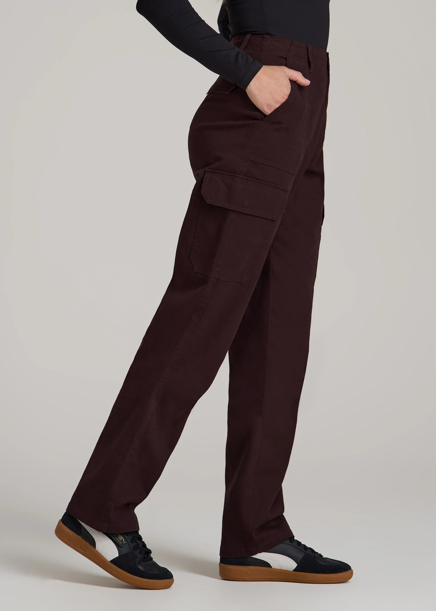 Straight Leg Cargo Chino Pants for Tall Women in Oxblood