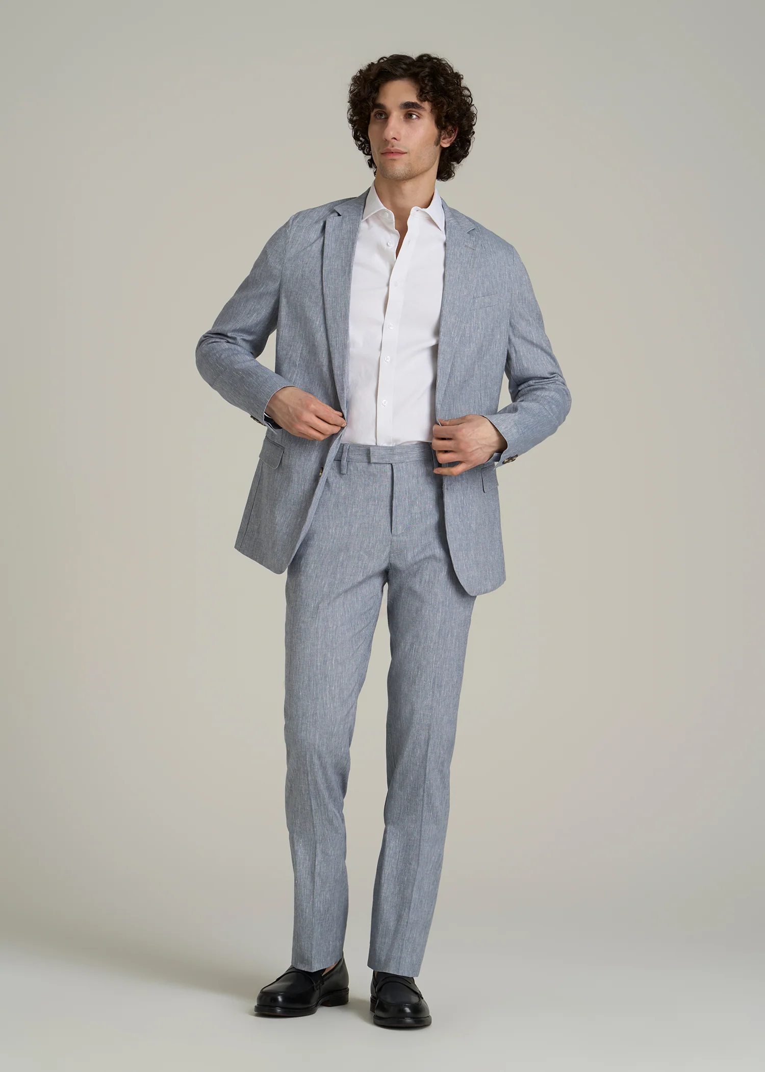Dress to impress with our Stretch Linen Blazer for Tall Men. This blazer combines the timeless appeal of linen with just the right amount of stretch, ensuring both a flattering fit and exceptional comfort. This long blazer for men offers a modern fit, soft shoulders, and side vents for a contemporary take on classic suiting, making it an impeccable choice for any occasion.