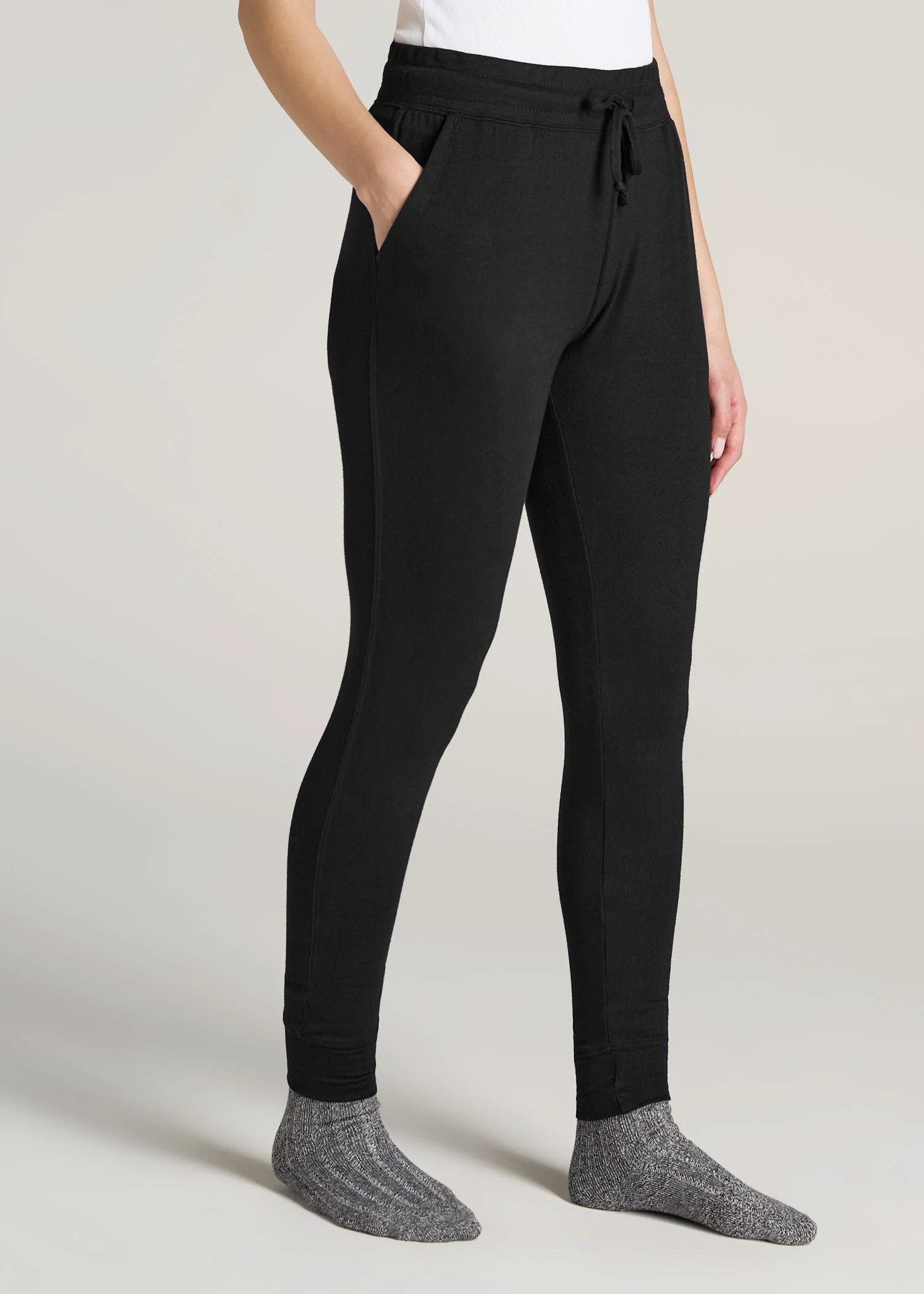 These lounge joggers for tall women are so comfy you'll want to wear them all day long. We know the struggles of finding loungewear and pajamas that fit your tall frame – which is why we designed this pair exclusively for heights 5'9” to 6'6”. They have an extra-long length with an inseam that'll go all the way to your ankles like joggers are supposed to, so you'll never have to worry about too-short hems again. We carefully sourced a lightweight fabric that's super soft to the touch and shrinkage-controlled to make sure you don't lose any precious inches when they get thrown in the wash. These women's extra-long joggers have a flattering regular fit and an adjustable elastic waistband that's perfect for eating pizza on the couch or getting a good night's sleep. Pair them with our matching lounge crewneck or a fitted long-sleeve tee and a warm pair of socks.